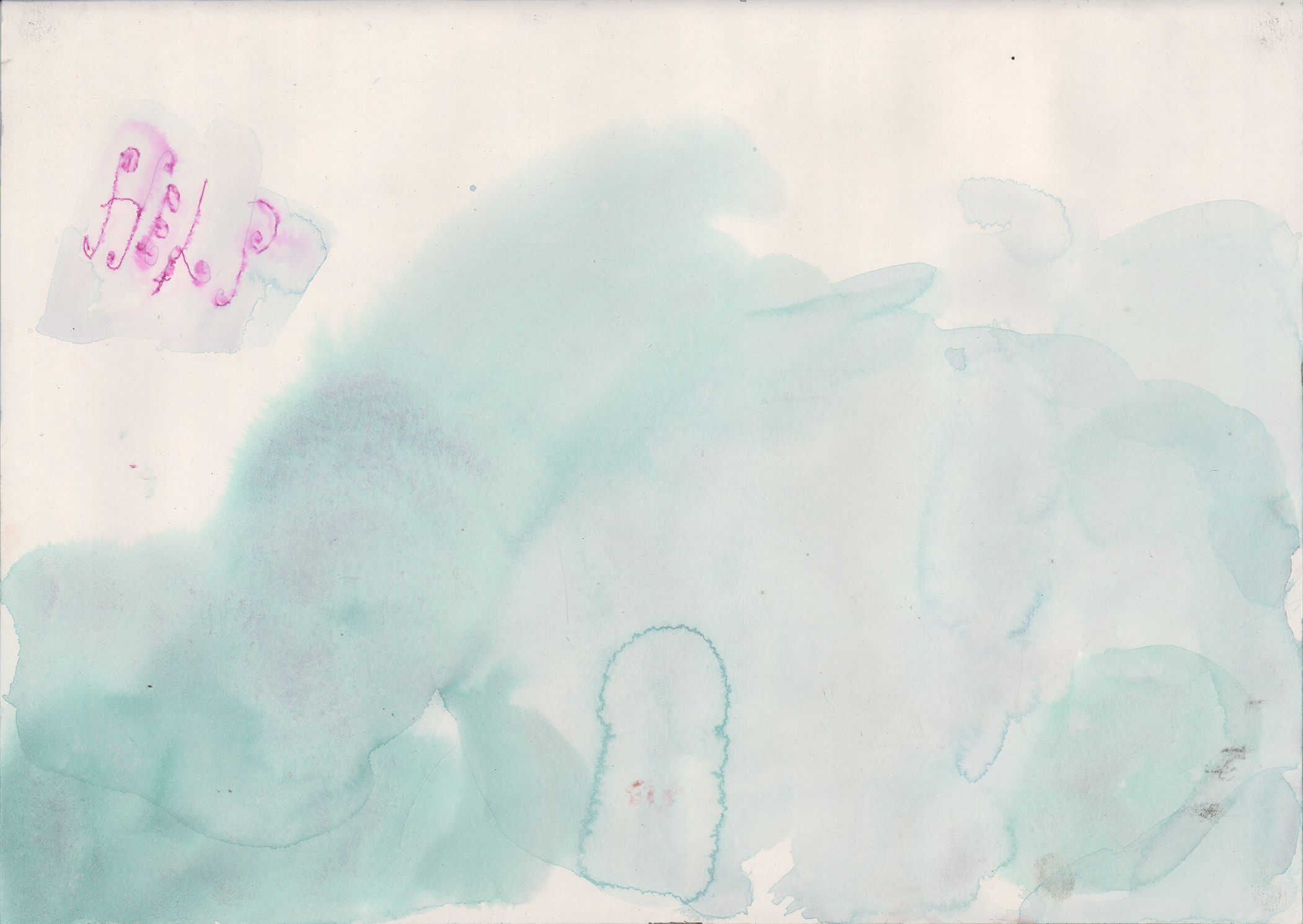 diluted corrections fluid, chromatographically processed black pen on watercolour paper,